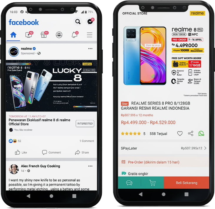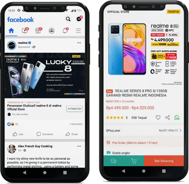 Munculkan produk anda saat user sedang scrolling Facebook dan Instagram. Saat produk di click, akan langsung diarahkan ke produk anda di Shopee