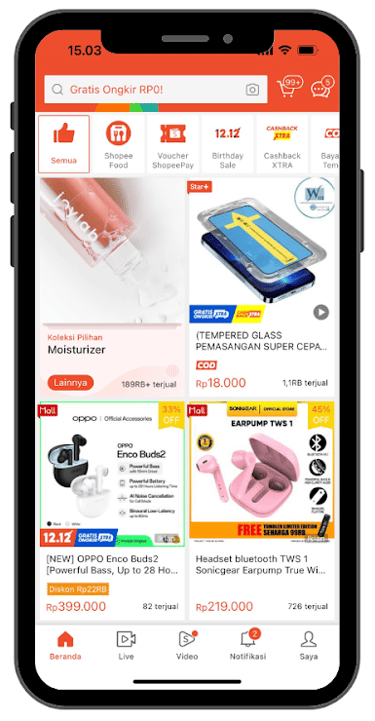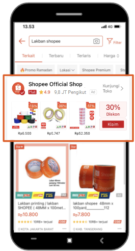 Muncul saat user mencari sebuah produk. Ada 9 titik tayangan di aplikasi Shopee