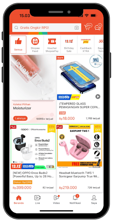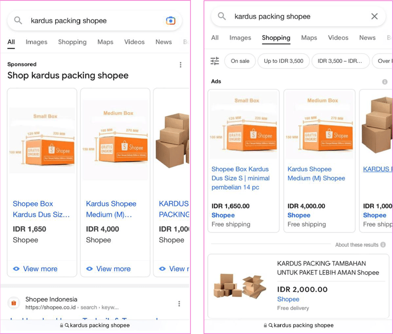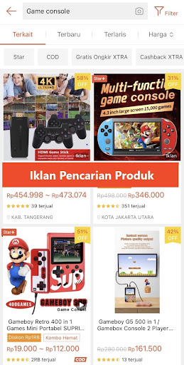 Muncul saat user mencari sebuah produk. Ada 3 titik tayangan di aplikasi Shopee