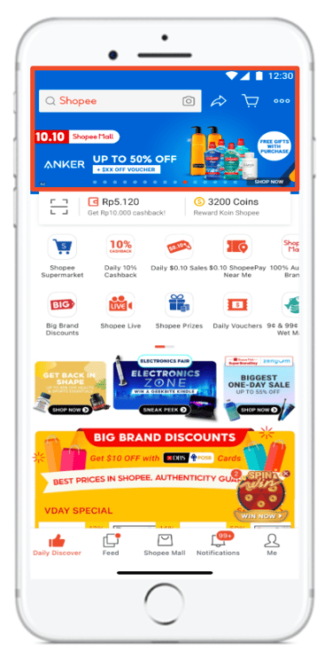 Menambah banner di halaman utama dan 5 titik lain dalam aplikasi shopee